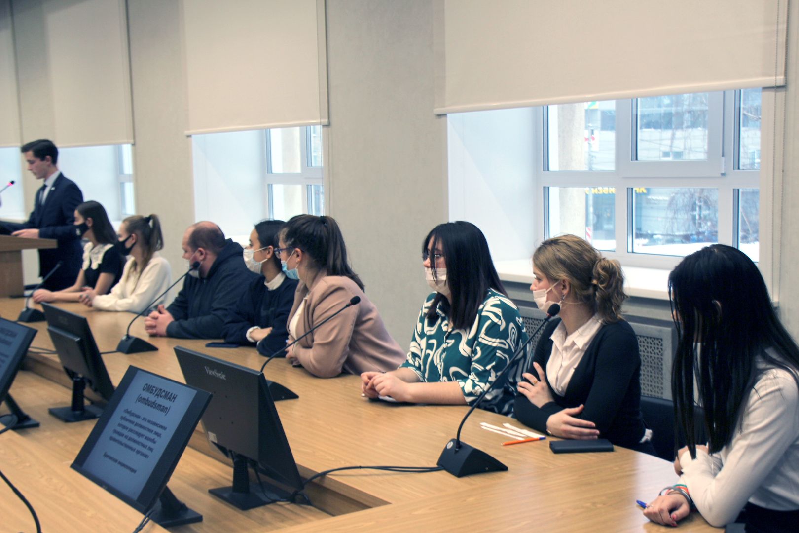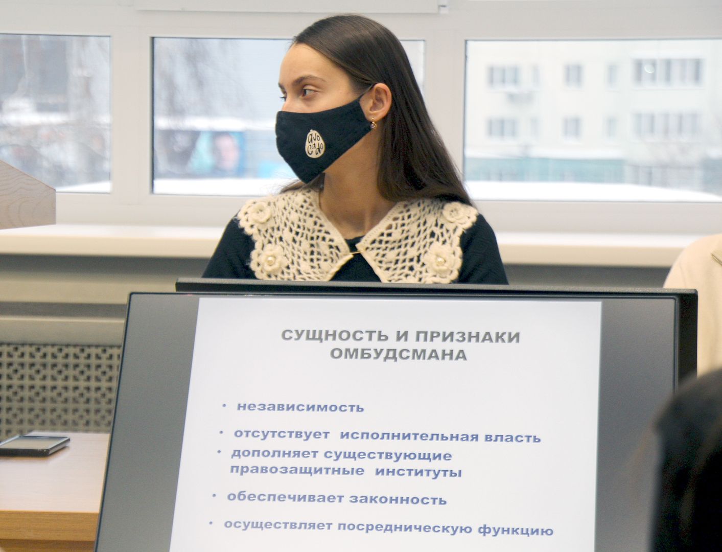 Во время встречи Нина Николаевна рассказала студентам об особенностях службы Уполномоченного по правам человека. В частности, деятельность омбудсмена осуществляется на основе принципов законности, независимости, справедливости, гуманности, открытости, объективности. Именно он является гарантом защиты прав и свобод человека и гражданина на территории Новосибирской области, содействует совершенствованию законодательства в этой сфере, участвует в правовом просвещении.