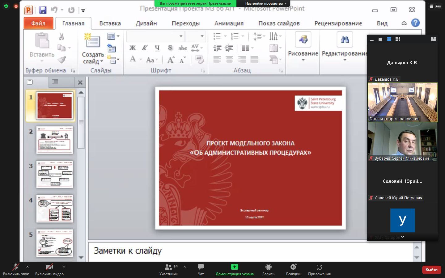 В рамках встречи профессиональных юристов прошло обсуждение проекта модельного для стран СНГ закона «Об административных процедурах», подготовленного рабочей группой ученых СПбГУ.