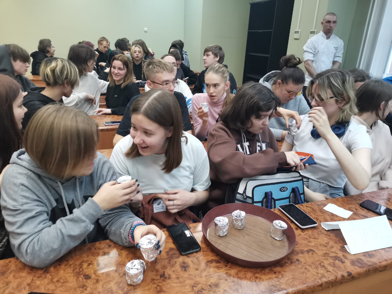 Приятным сюрпризом для первокурсников стали состязания между группами, на которых они смогли продемонстрировать поварскую интуицию, смекалку и некоторые кулинарные знания. Для выполнения заданий студентам пригодились тактильные способности, острое обоняние и скорость в движениях. Ключевым событием мероприятия стал мастер-класс от старшекурсников. В завершение мероприятия каждый первокурсник прошел «обряд» посвящения в профессию с половником - виртуальным источником позитивного отношения к поварской жизни.