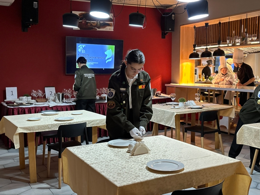 Мероприятие проходило 29 сентября на профессиональной площадке «Центр сервисной компетенции СибУПК», где участники продемонстрировали свои навыки и умения в трех компетенциях: «Официант», «Бармен» и «Повар».