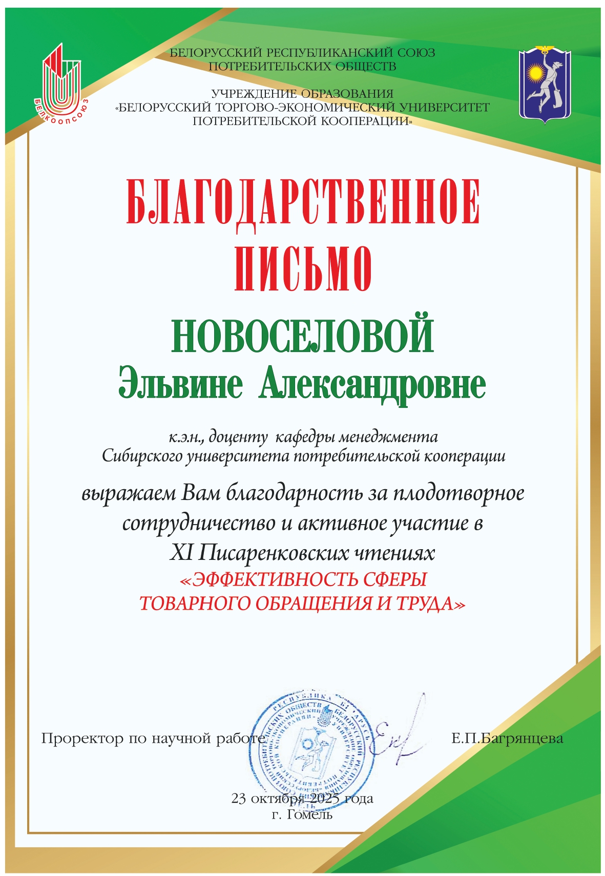Октябрь 2025 года отмечен активной международной научной деятельностью ученых Сибирского университета потребительской кооперации (СибУПК). Исследователи вуза приняли участие в двух значимых научных мероприятиях, организованных партнерами по Сетевому университету «Кооперация», где представили аналитические разработки, соответствующие актуальным глобальным экономическим трендам.