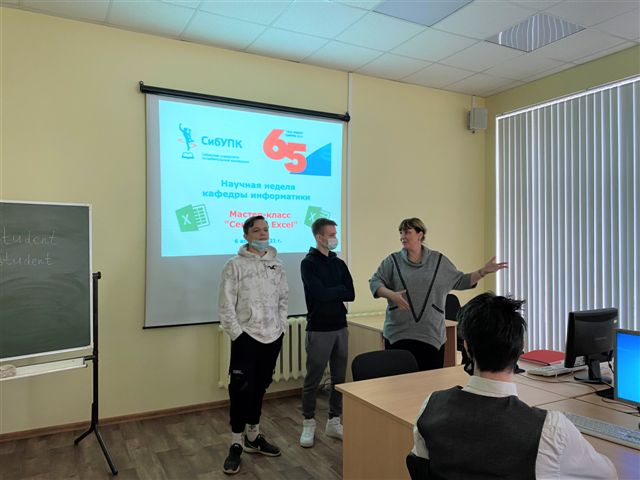 Кафедра провела также практические мастер-классы для учащихся образовательных организаций. Так, 6 апреля 2021 г.состоялся мастер-класс «Секреты Excel», который провела старший преподаватель Бабанова Е.В. Преподавателю ассистировали обучающиеся 2-го курса СПО Бондашевский Влад и Сафонов Данил. В мероприятии приняли участие обучающиеся 8го класса инженерно-технологического профиля МБОУ Лицей № 113.