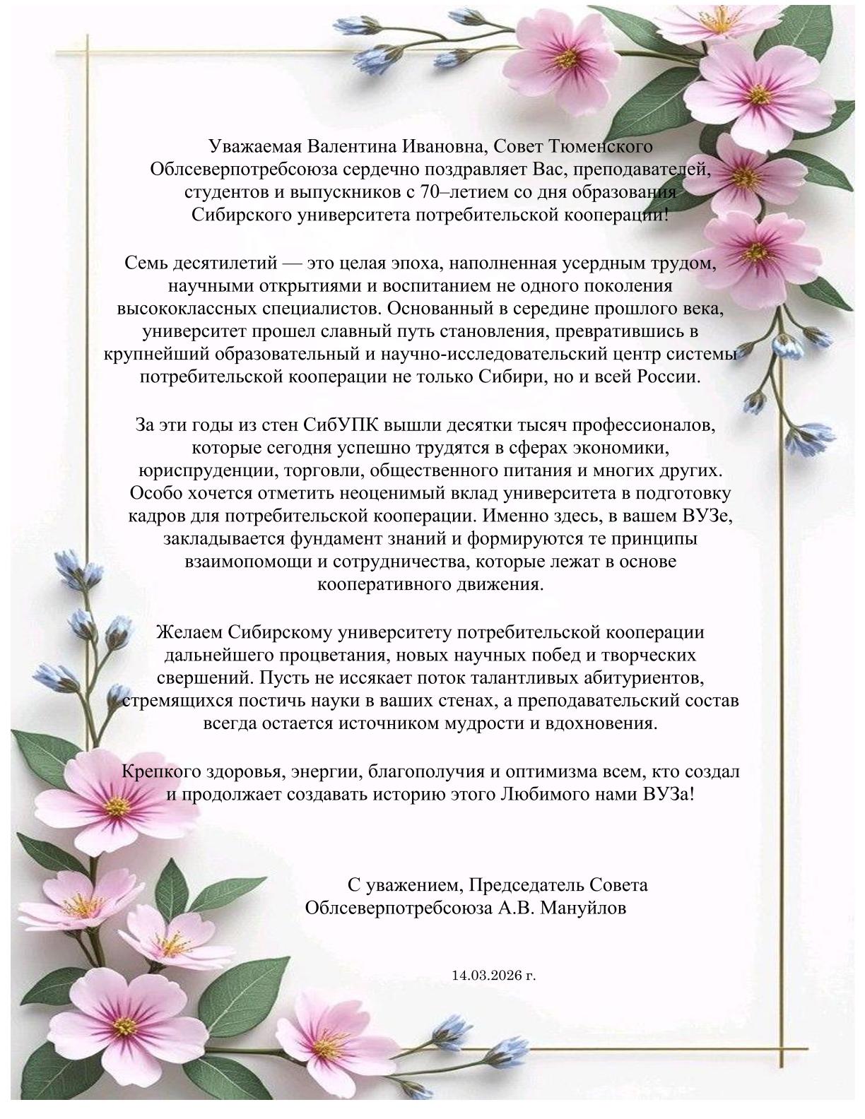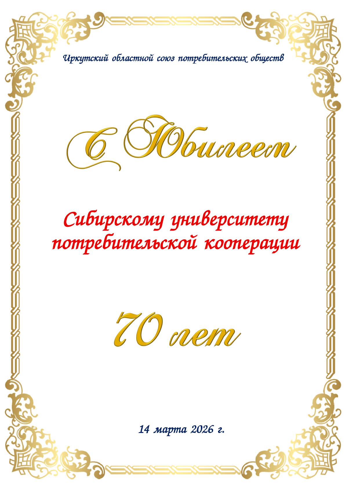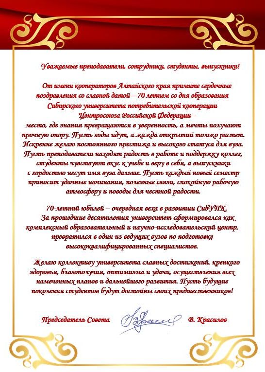 Поздравления с 70-летием СибУПК