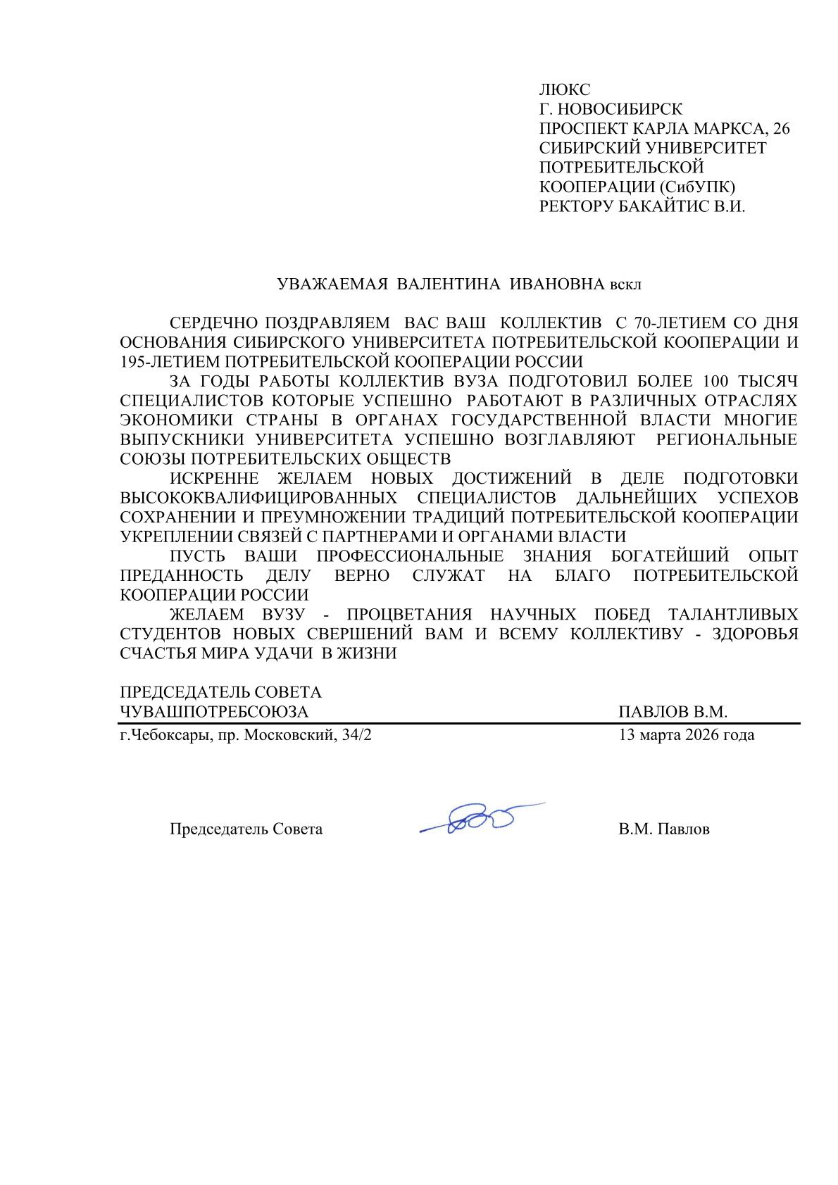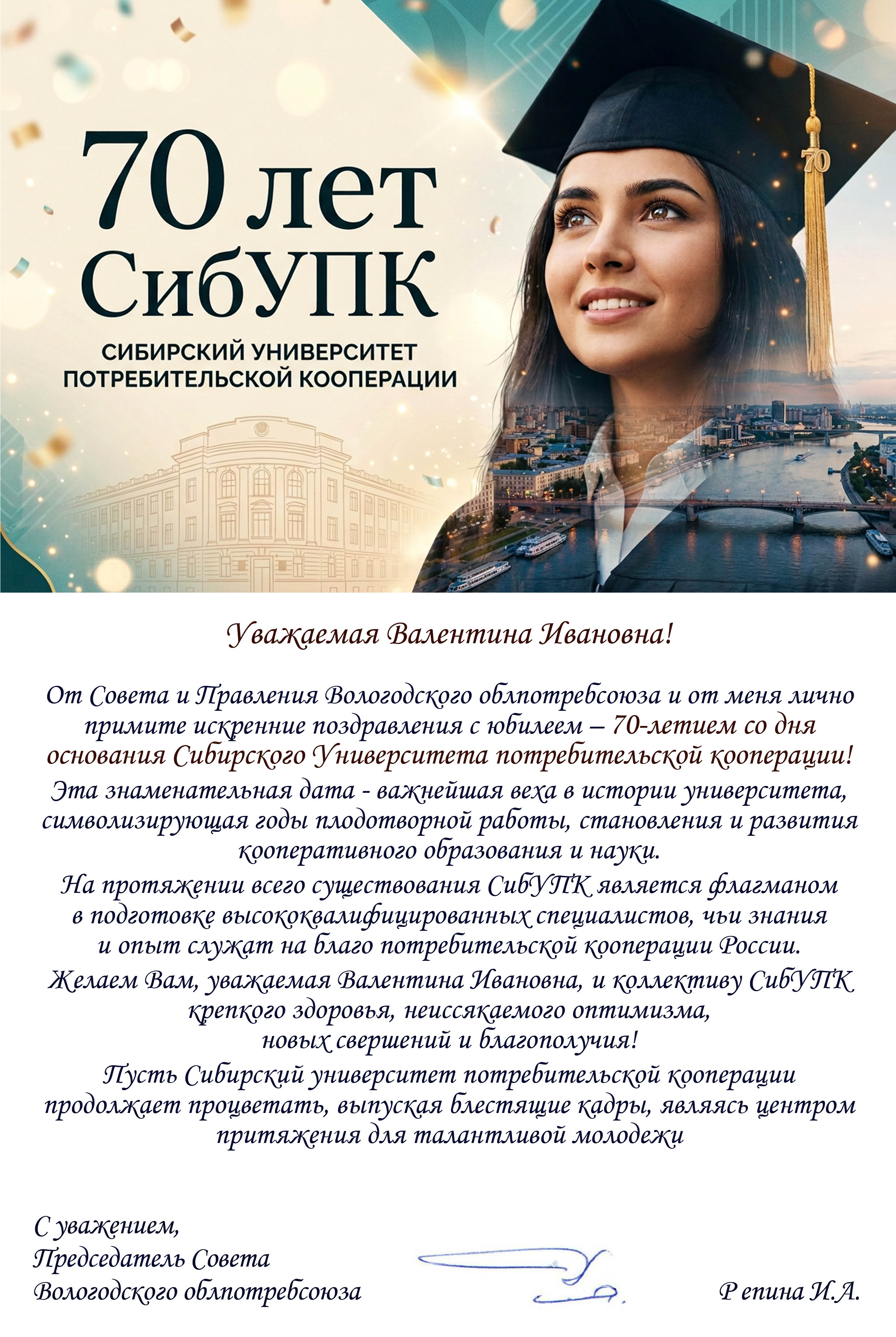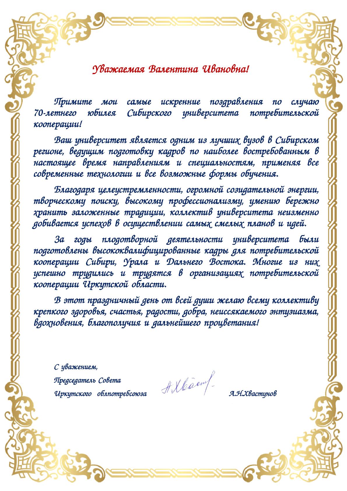 Поздравления с 70-летием СибУПК