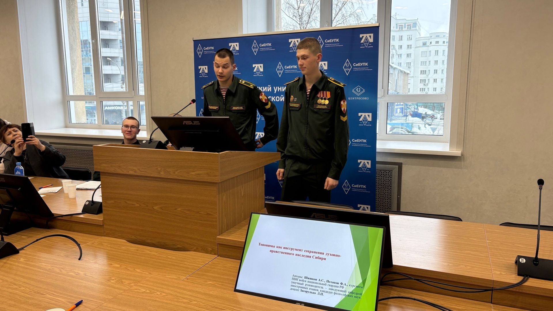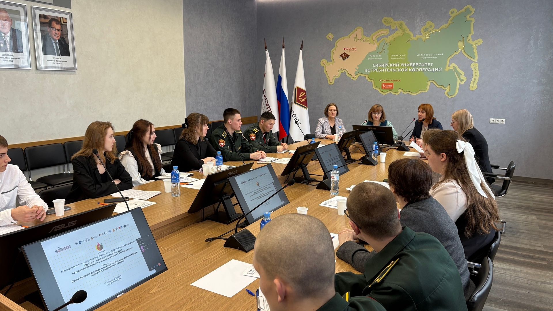 17 февраля на площадке СибУПК состоялось секционное заседание конференции на тему «Духовно-нравственное и историческое наследие Сибири: личности, свершения, память». В программу были отобраны 14 докладов студентов Сибирского университета потребительской кооперации, Новосибирского военного ордена Жукова института войск национальной гвардии РФ, а также Белорусского торгово-экономического университета потребительской кооперации (г. Гомель, Беларусь).