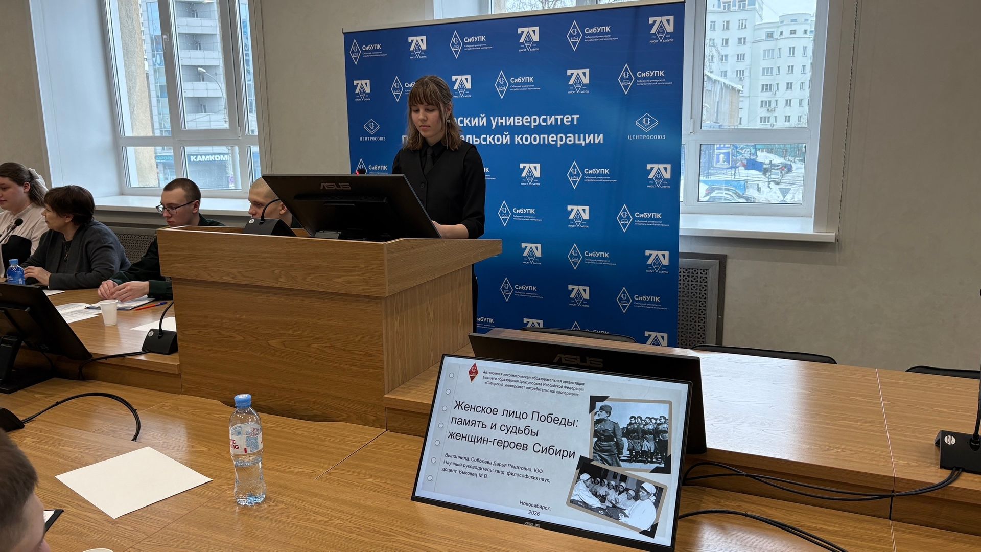 Молодые ученые СибУПК затронули тему вклада женщин в Победу в Великой Отечественной войне, изучив судьбы женщин-героев Сибири. Отдельный блок был посвящен воинам-защитникам и современным героям в докладах о реализации в университете социального проекта «Мой Афган»: мы помним...», о людях и судьбах в период контртеррористической операции на Северном Кавказе. Одно из ярких выступлений было посвящено женщине-космонавту из Новосибирской области - «Анна Кикина: женщина среди звёзд».