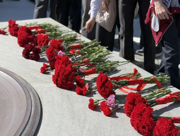 Участники акции почтили минутой молчания память павших в боях за Родину и возложили цветы к мемориалу. Торжественная атмосфера, искренние эмоции и общая память о подвиге объединили всех присутствующих.